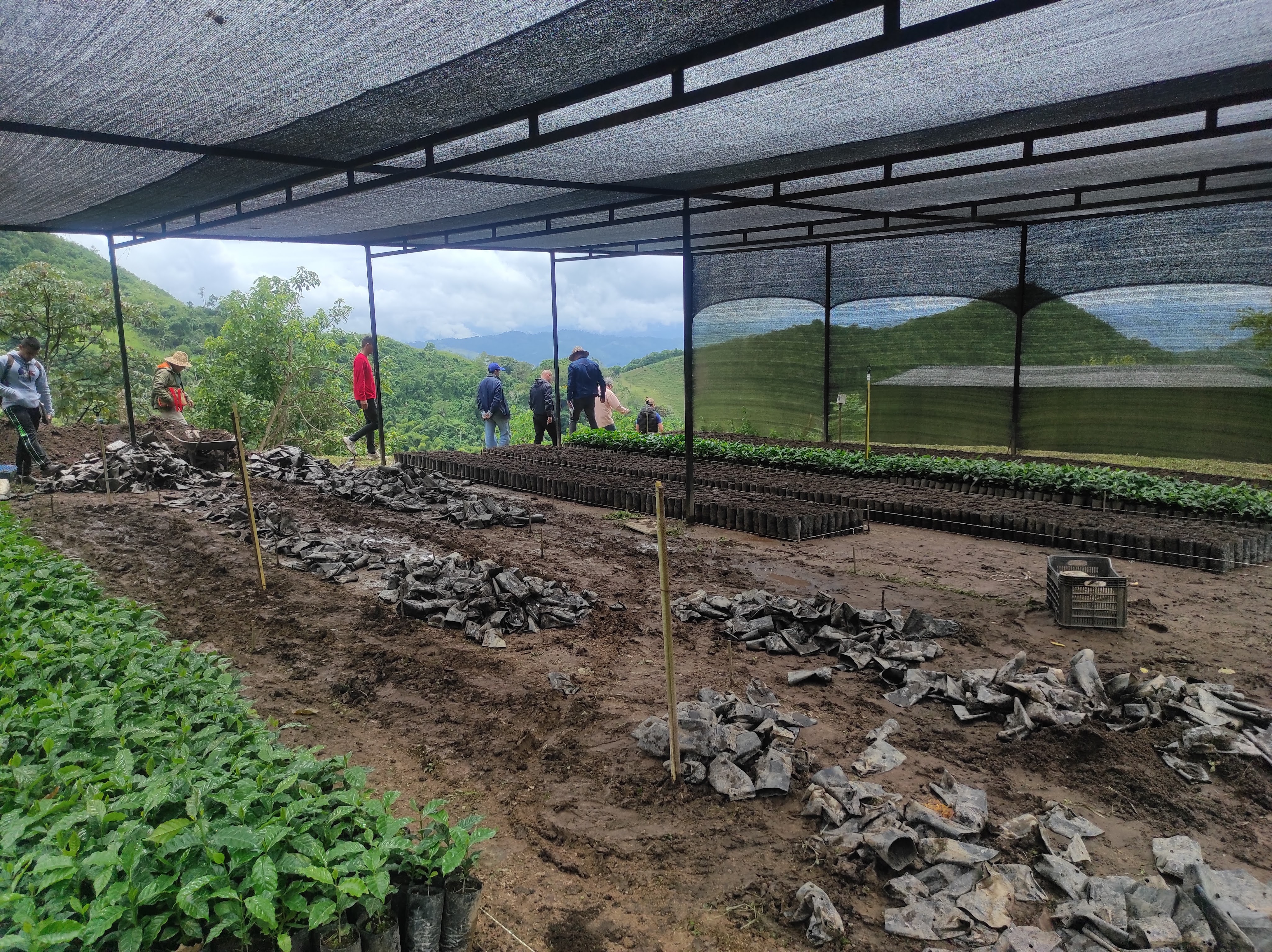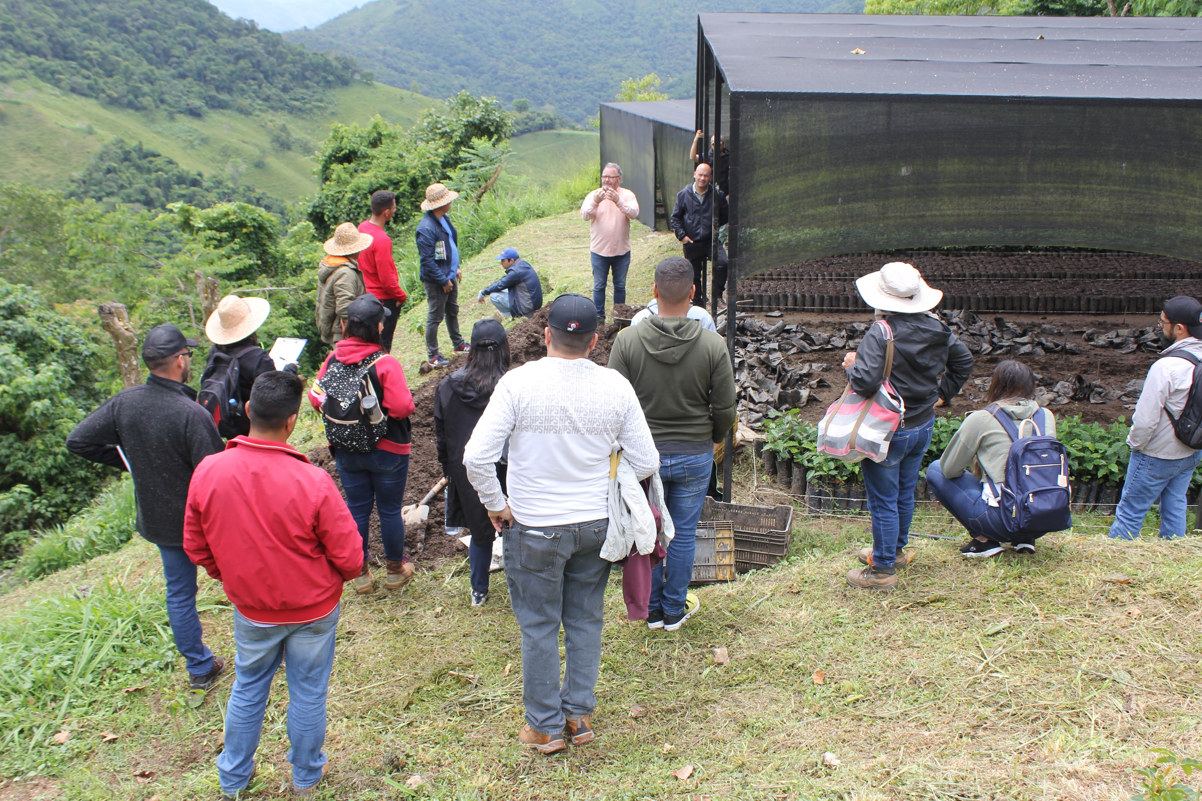 Para finalizar, visitamos el vivero de la Hacienda, en donde observamos y discutimos sobre el proceso de elaboración de plántulas de café y las buenas prácticas agrícolas necesarias.