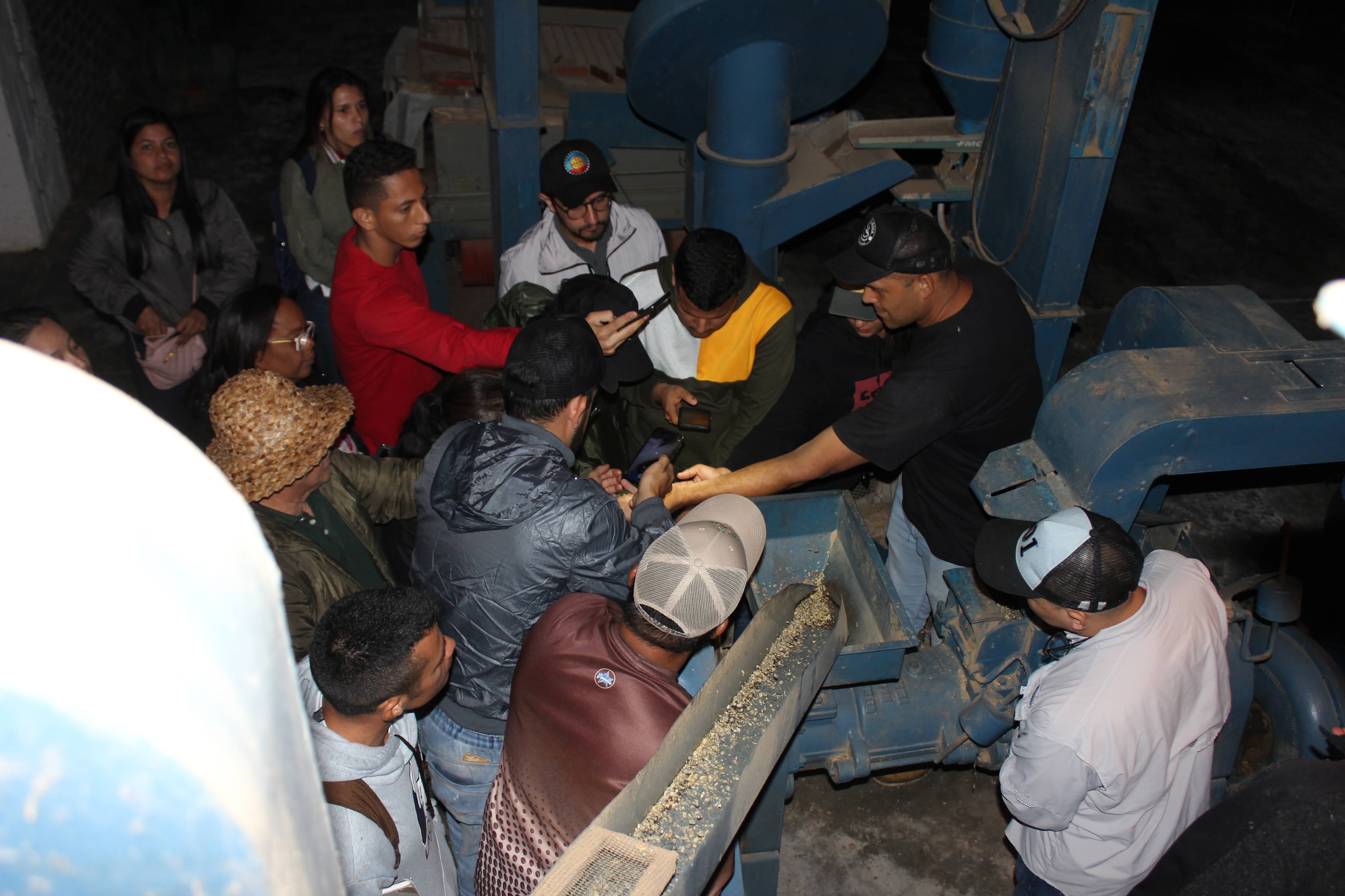 Recorrimos la central de beneficio, a fin de conocer los equipos que intervienen en el procesamiento del café. Trillamos un lote de café pergamino, pudiendo observar los pasos para la calibración de la trilla, fundamental para garantizar el éxito de esta etapa del proceso.