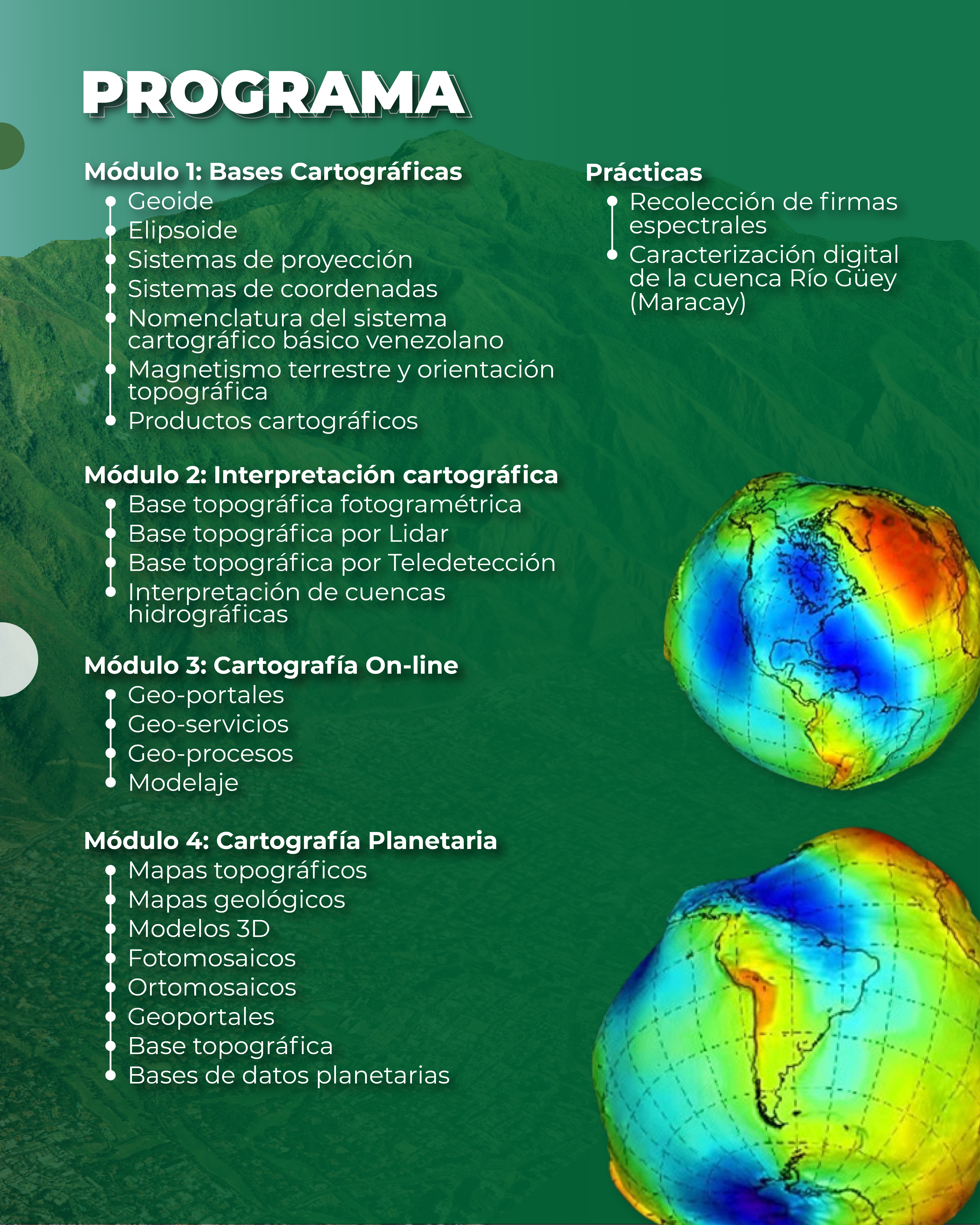 El objetivo del curso consiste en comprender los fundamentos de la cartografía básica para manejar e interpretar los principales documentos cartográficos, impresos y digitales, utilizados en la planificación y la gestión de recursos y en las actividades cotidianas de navegación, exploración, trabajo y recreación.