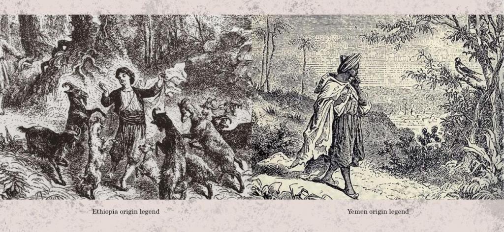 La planta de café o cafeto tiene su origen en las zonas montañosas de la región de Abisinia, Etiopía, en el noreste de África. El descubrimiento de sus propiedades es fruto de leyendas. Una de ellas está relacionada con el místico sufita marroquí Abu al-Hasan al-Shadhili, el cual, en sus viajes por Etiopía, observó el consumo del fruto del cafeto por parte de ciertas aves, las cuales volaban con una vitalidad inusual, al consumirlas el mismo, experimento esa misma vitalidad (Ukers, 2022).